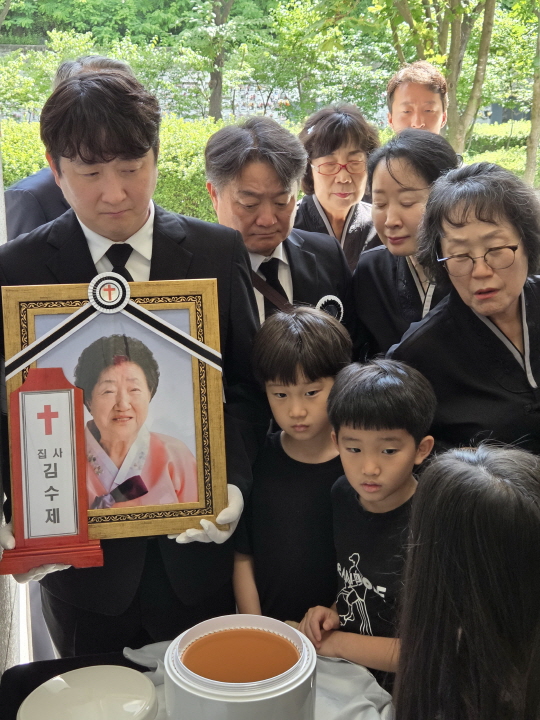 어머니! 그동안 우리들 키우고 아버지 돌본다고 고생 많으셨어요. 자식들 하나같이 모나지 않게 평범하게 키운것이 큰 지혜였어요. 일제시대와 625도 겪었지만 씩씩하게 여장부답게 활력있는 삶을 사시고, 말년에는 치매라는 것과 친구로 지내며 그래도 본인 마음은 편하셨을 거라 믿습니다. 주기도문을 열심히 외우시고 아멘은 특히 큰 소리로 마감하시던 모습이 가장 남습니다. 엄마 사랑해 하면 나도 사랑해라고 해주시고 누가 제일 예쁘냐고 하면 전부다 예뻐라고 항상 말해주시고, 비록 폐 때문에 돌아가셨지만, 항상 말씀드렀듯이 잠시 눈 감았다가 눈뜨면 천국에 계시니 그곳에서 우리 주님과 함께 복되게 지내시다가 잠시 후에 우리랑 만나요. 그래도 지금 또 보고싶은 엄마, 우리들 이만큼 잘 키워줘서 고맙고 사랑해요!